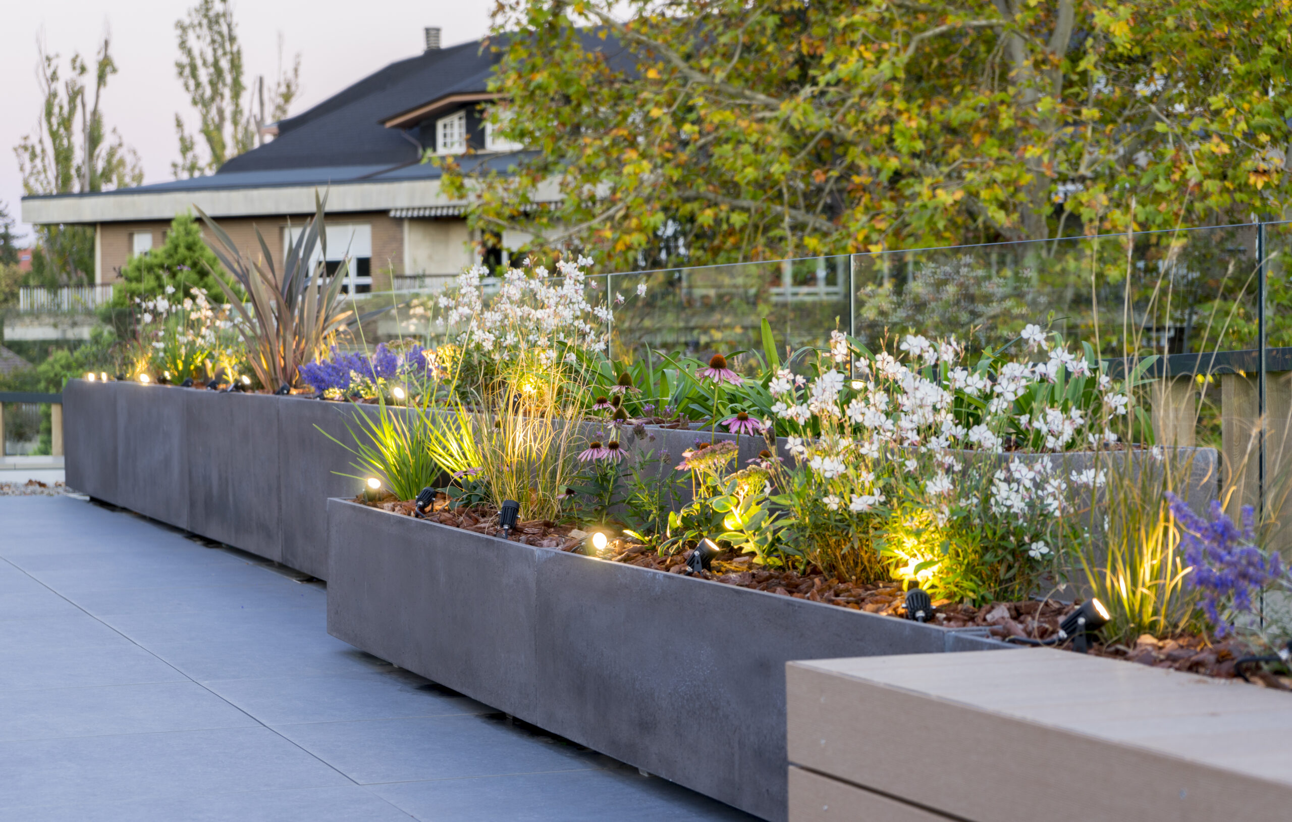 Landare-espezieak kontu handiz aukeratzea, kolore- eta testura-paleta zainduz, belar-espezieak, gramineoak eta zuhaixkak konbinatuz, baita zuhaitz bereizgarriak ere.