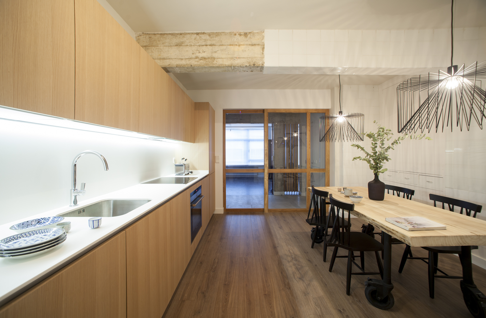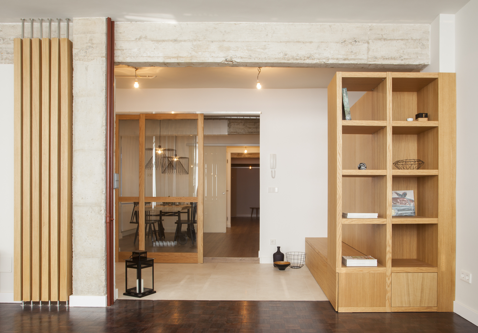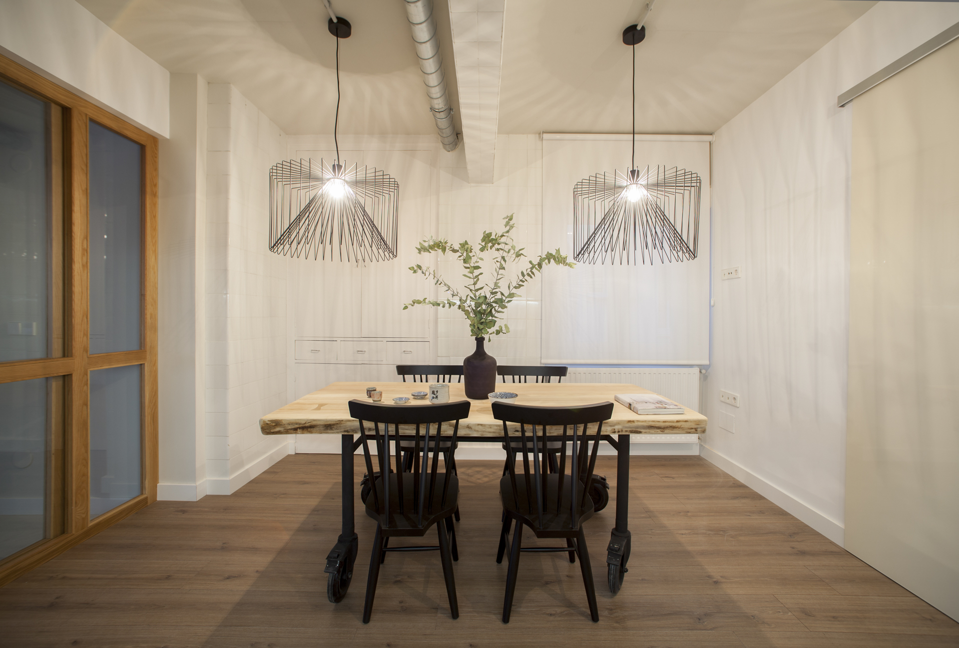 Una distribución peculiar que conecta espacios, eliminado el pasillo, manteniendo la esencial del gran salón y transformando el resto de la vivienda